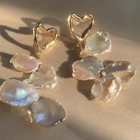 360-Natural Baroque Petal Irregular Pearl Silver Stud Earrings Vacations Gift For Her