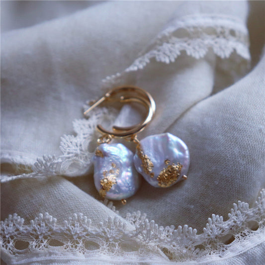 361-Natural Baroque Pearl Silver and Gold Fragment Hoop Earrings Vacations Gift For Her