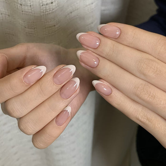 Nude&Pink Medium Almond-Lulou Classic White French Tip Press On Nails Glueless Easy Apply Reusable 10PCS - Salon Quality Glueless Fake Nails for Women Trend 2025
