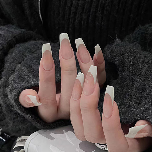 Nude&Pink Long Square-Lulou Classic White French Tip Press On Nails Glueless Easy Apply Reusable 10PCS - Salon Quality Glueless Fake Nails for Women Trend 2025
