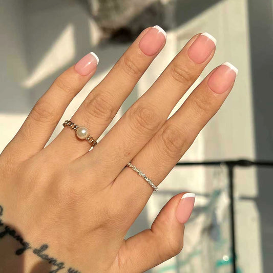 Nude&Pink Short Square-Lulou Classic White French Tip Press On Nails Glueless Easy Apply Reusable 10PCS - Salon Quality Glueless Fake Nails for Women Trend 2025