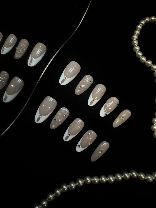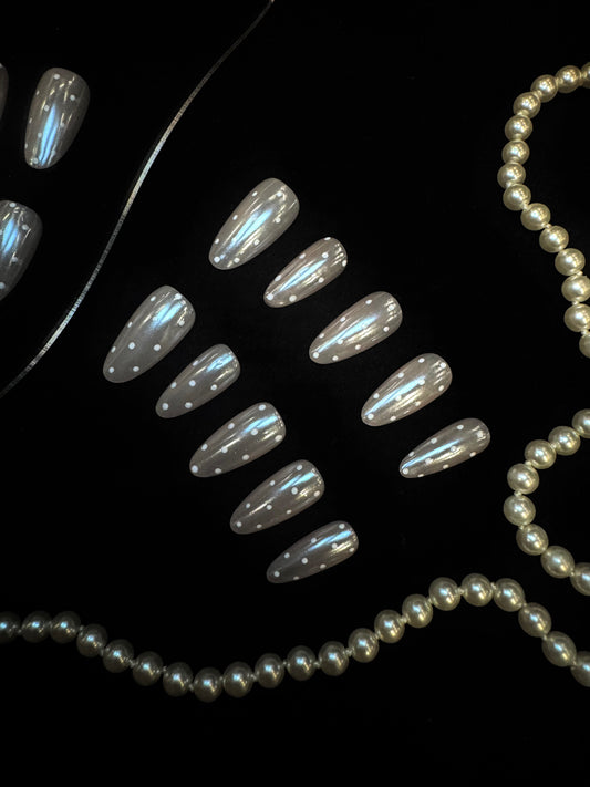 Lulou Pearl Polka Almond Press on Nails Nude 10PCS REUSABLE Handmade Acrylic Fake Nails with Glitter Dots Trend 2025