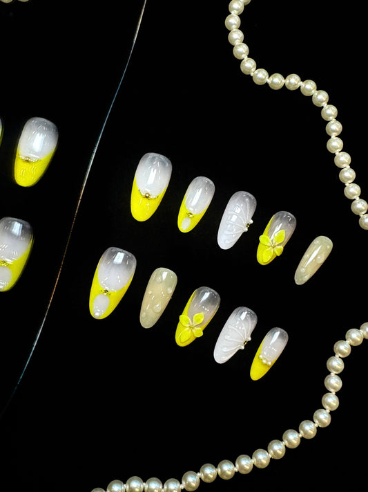 Lulou Vibrant Daisy 3D Yellow Floral Almond False Nails 10PCS REUSABLE Handmade Acrylic Press On Nails Trend 2025