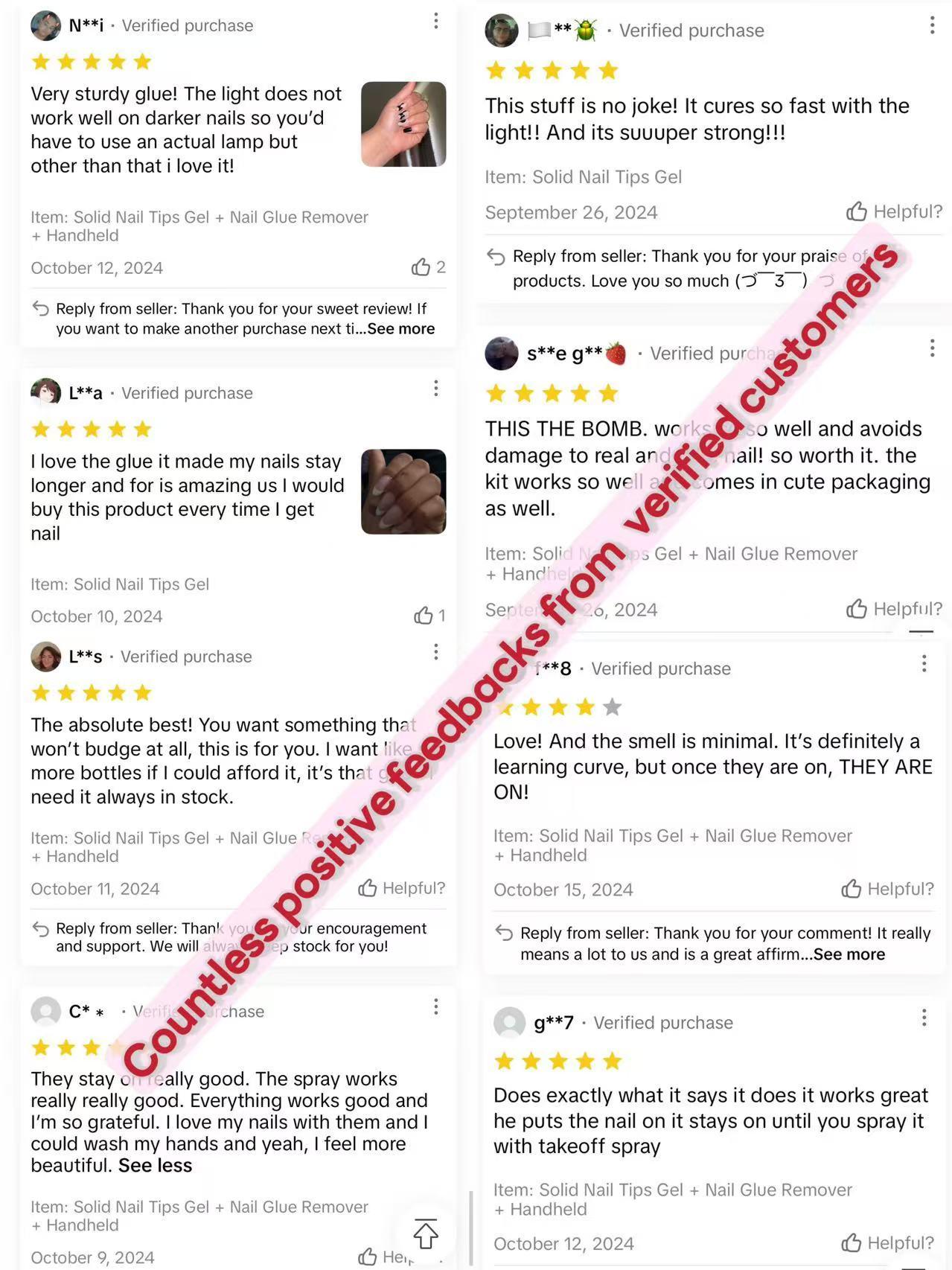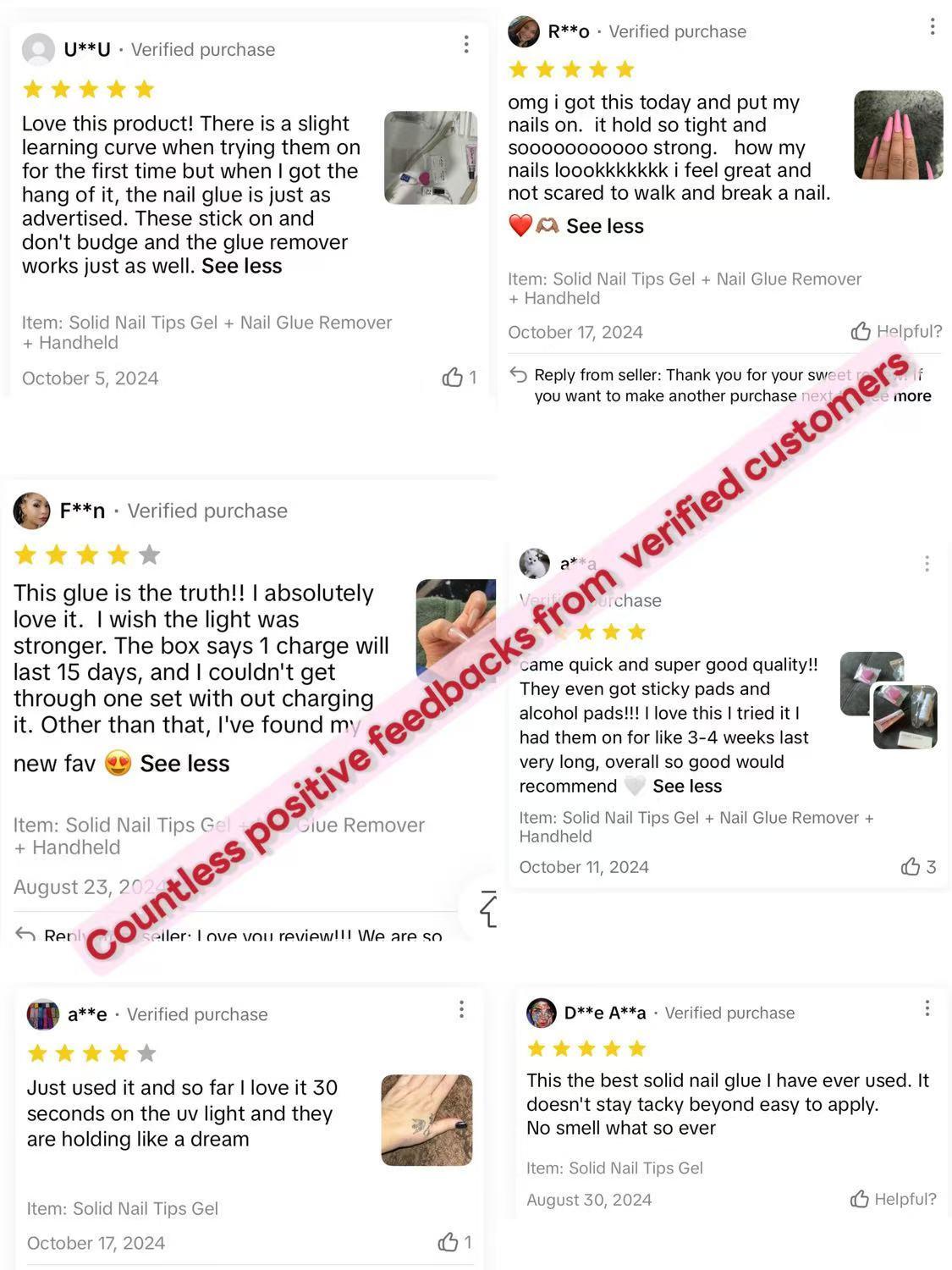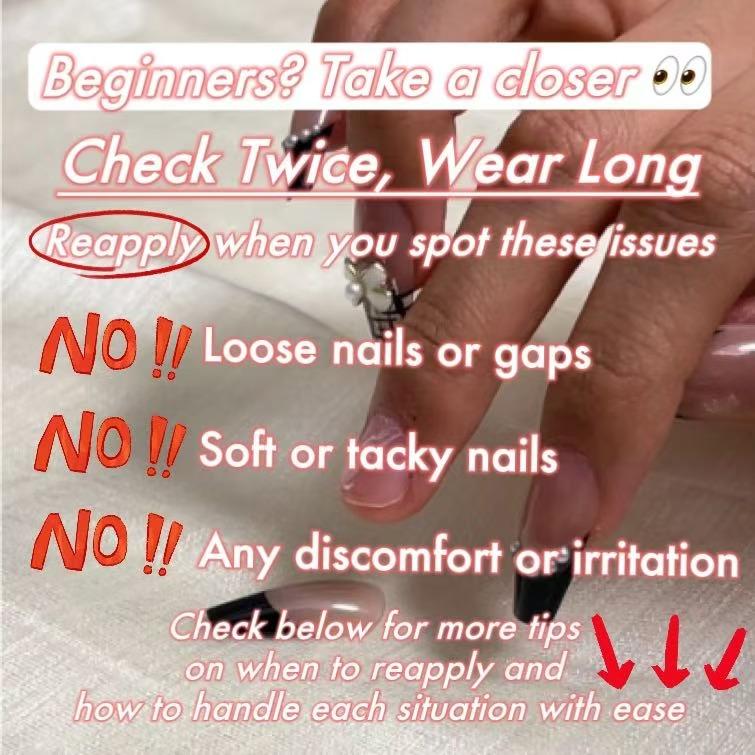 - Black/deep color press-ons can not be fully cured!Use the jelly glue from the gift toolkit, or go for the liquid glue from our shop if needed.