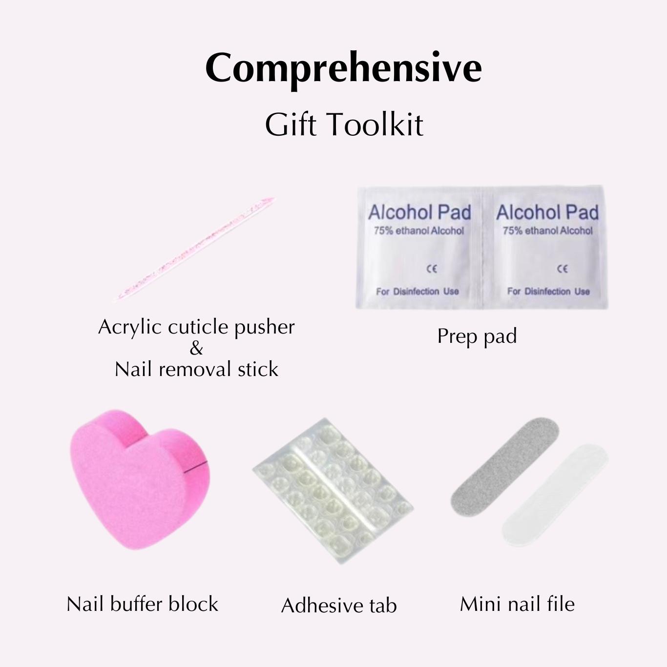- Cuticle stick, Prep pad, Nail file/Nail buffer (Included in Gift Tool Kit)