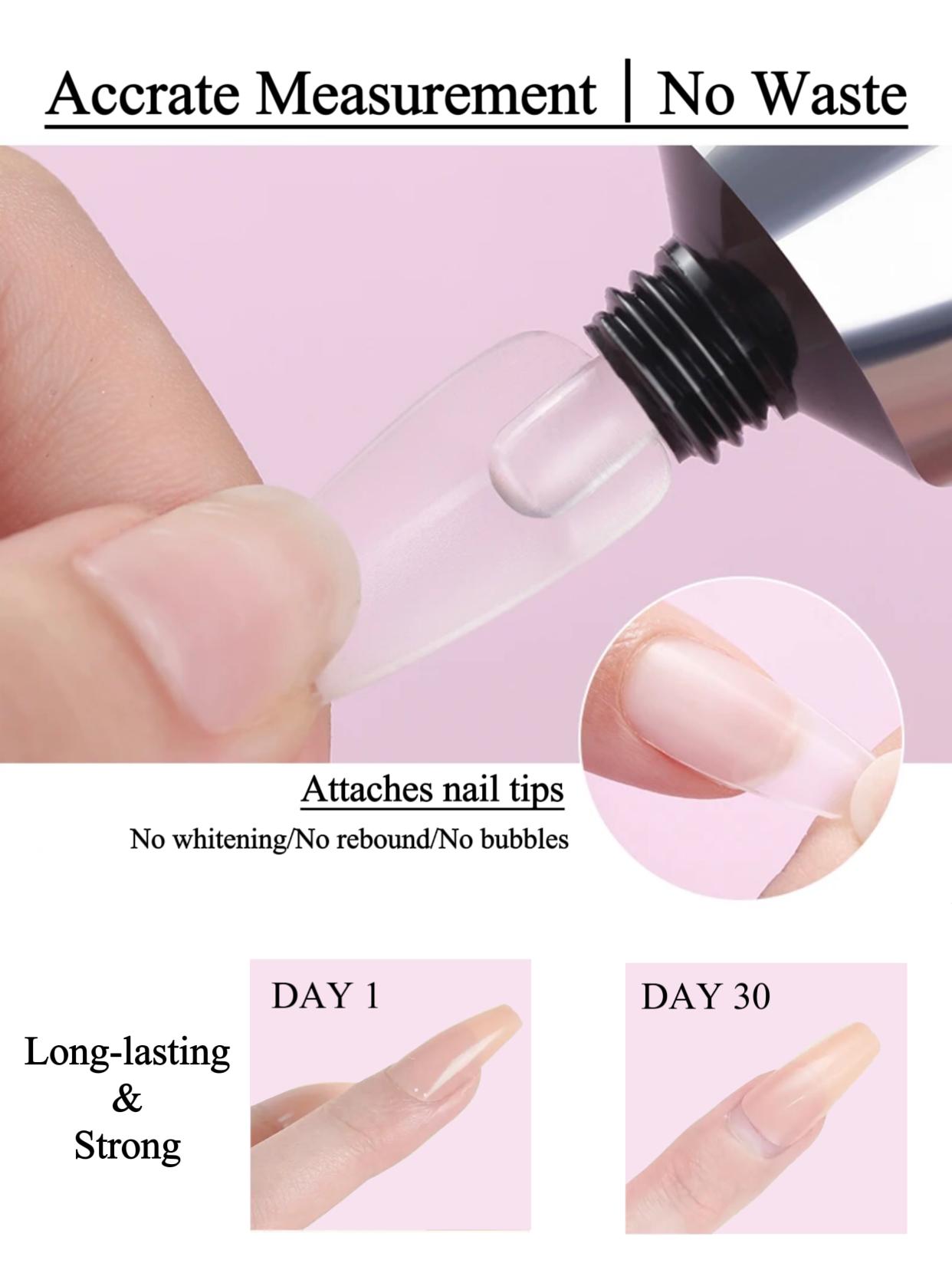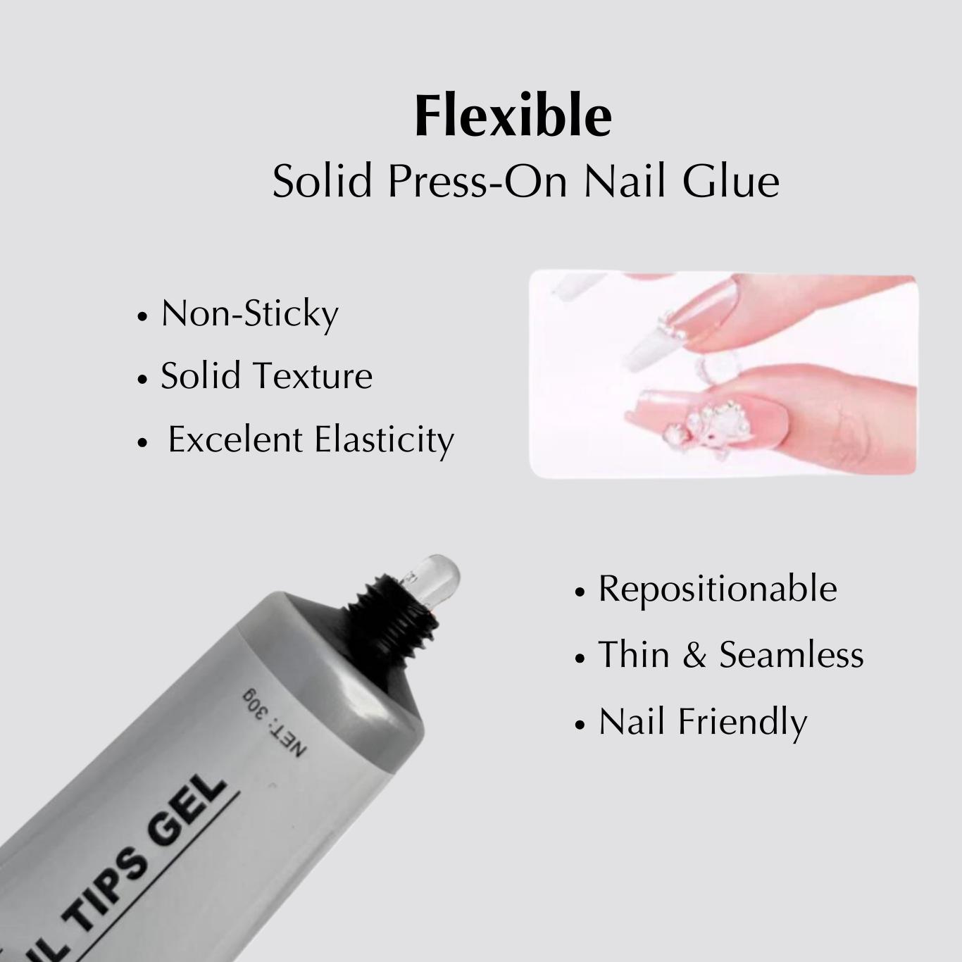Solid Nail Glue (30g): Solid texture/ Excellent elasticity/ Repositionable/ Thin&seamless.