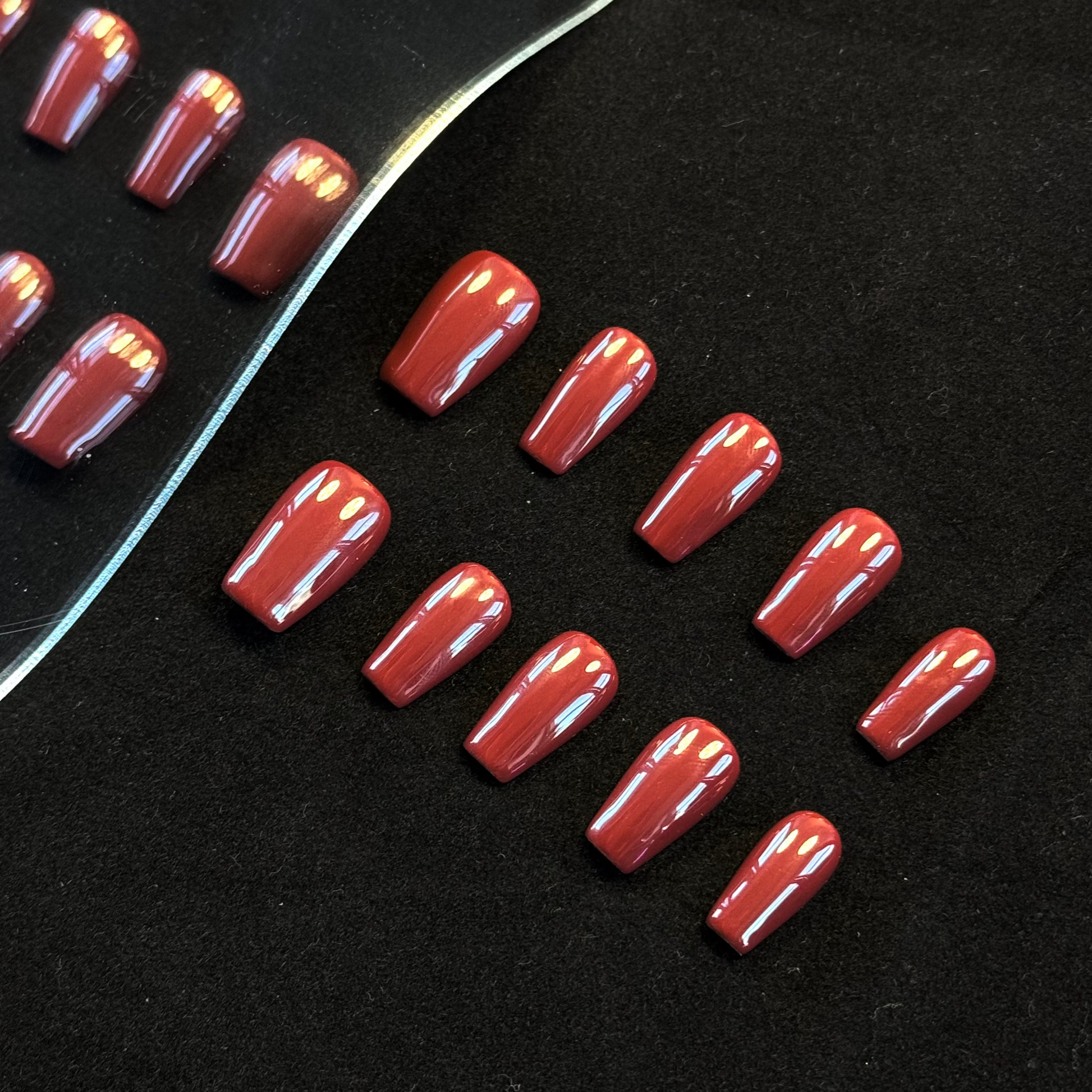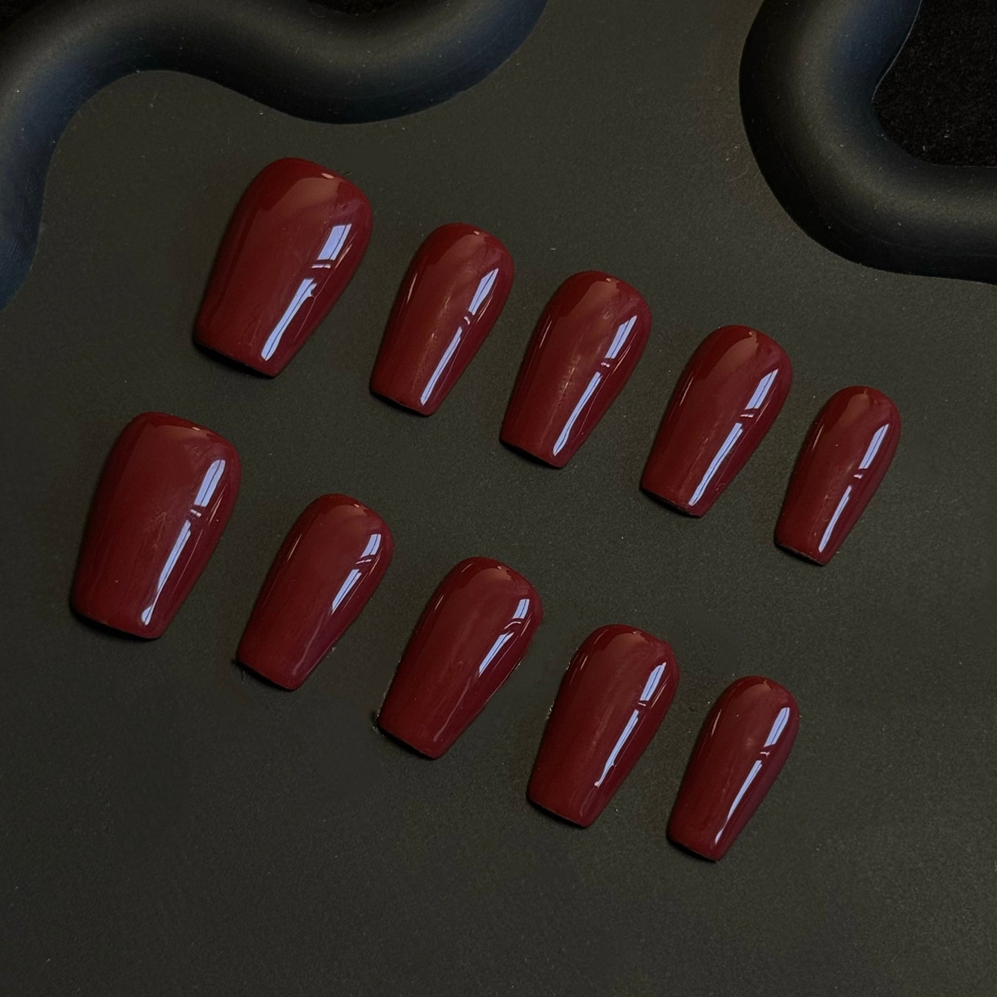 Lulou Red Luxe Gloss Long Square Press On Nails Glossy Solid Tone Handmade Acrylic 10PCS Christmas Winter Holiday Trend 2025